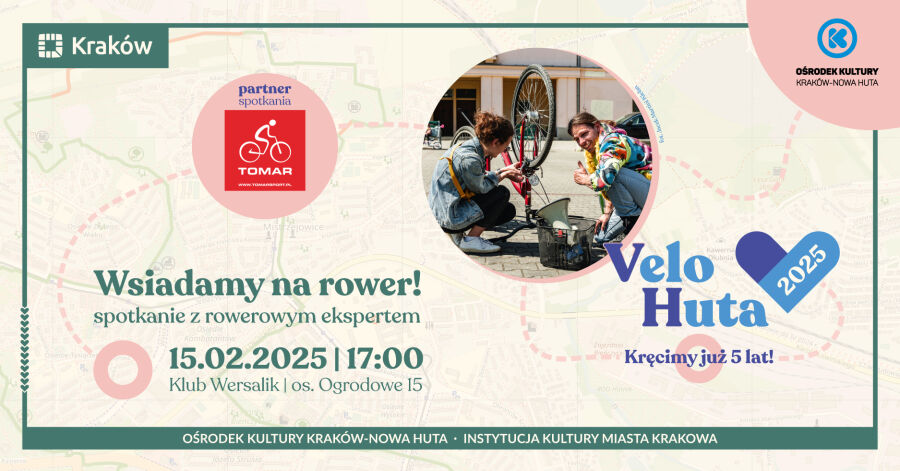 Ośrodek Kultury Kraków Nowa Huta organizuje kolejną edycję wydarzenia - Ruszamy z Velo Huta 2025! W tym roku akcja rozpoczyna się już w lutym, bo to świetny moment, żeby zadbać o rower przed sezonem! Na dobry początek Organizatorzy zapraszają Państwa na spotkanie z rowerowymi ekspertami. Wstęp jest wolny!