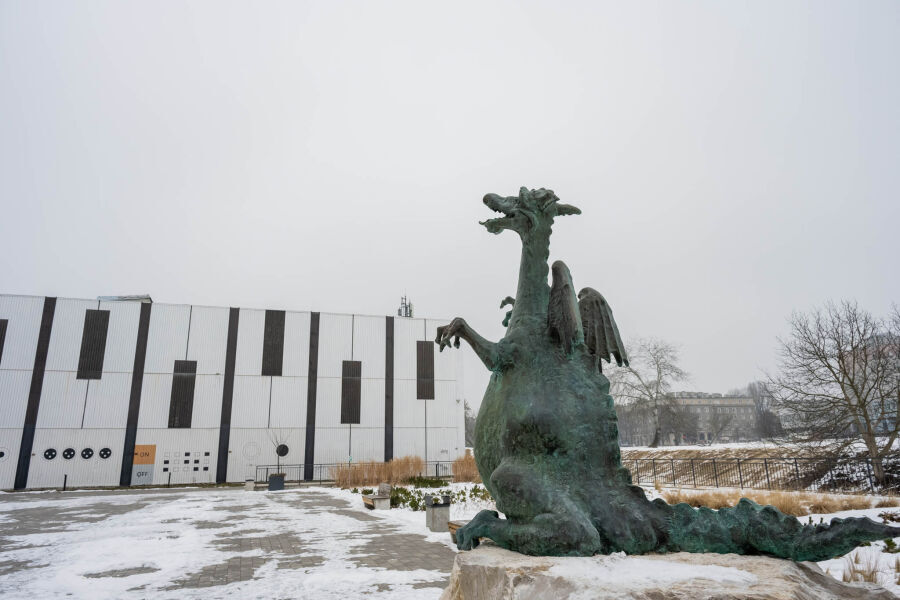 Przestrzeń wokół Nowohuckiego Centrum Kultury zyskała wyrazisty akcent artystyczny. Rzeźba smoka, wykonana z brązu i osadzona na potężnym kamiennym bloku, od początku 2026 roku przyciąga uwagę mieszkańców i spacerowiczów, stając się nowym znakiem rozpoznawczym tej części dzielnicy.