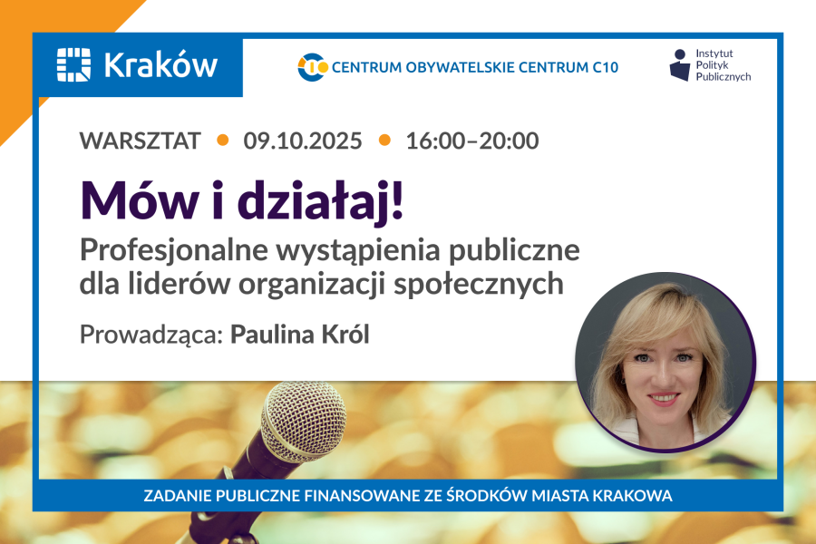 Centrum Obywatelskie Centrum C 10 zaprasza do udziału w drugiej edycji szkolenia "Mów i działaj! Profesjonalne wystąpienia publiczne dla liderów organizacji społecznych".