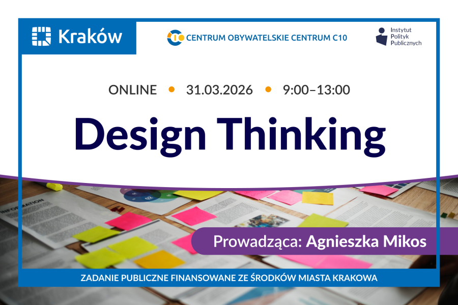 Centrum Obywatelskie Centrum C 10 oraz Fundacja Instytut Polityk Publicznych zapraszają Państwa na warsztaty online poświęcone metodzie kreatywnego rozwiązywania problemów Design Thinking.